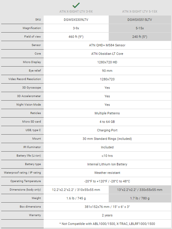 Met behulp van de nieuwe ATN QHD + M584-sensor met een resolutie van 2688×1944 produceert de X-Sight LTV zowel overdag als ‘s nachts een ongelooflijk levendig en scherp beeld.